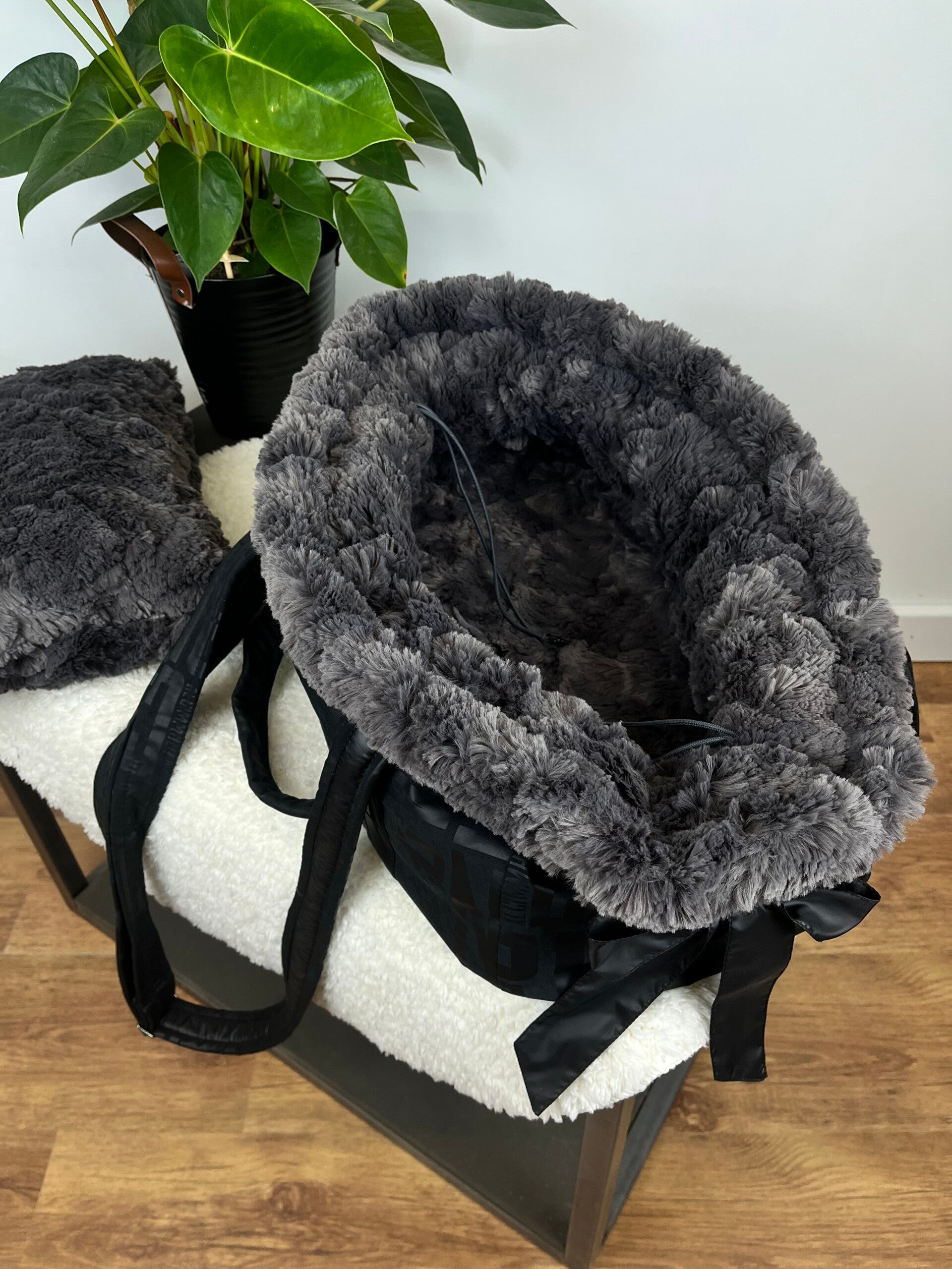 Deze luxe draagtas met hoge kwaliteit imitatiebont is de perfecte manier om uw hond mee te nemen waar u ook gaat. De strikken bevinden zich zowel vooraan als achteraan en kunnen ook strakker getrokken of losser gemaakt worden. Zodat er meer stevigheid of meer comfort mogelijk is.